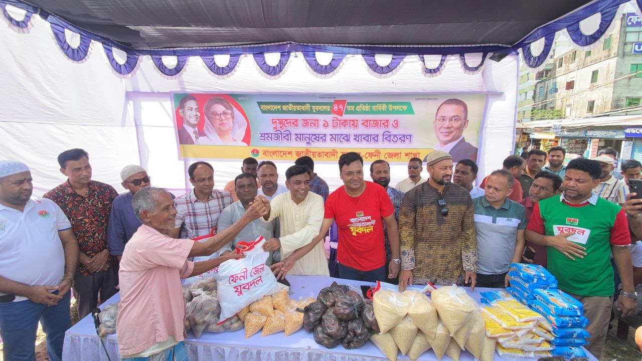 ফেনী প্রতিনিধিঃ বাংলাদেশ জাতীয়তাবাদী যুবদলের ৪৭তম প্রতিষ্ঠাবার্ষিকী উপলক্ষে ফেনীতে স্বল্প আয়ের ও দুস্থ মানুষের জন্য ব্যতিক্রমধর্মী ‘এক টাকার বাজার’ এবং শ্রমজীবী মানুষের মাঝে খাবার বিতরণ করা হয়েছে।বুধবার (২৯ অক্টোবর) সকালে শহরের মুক্ত বাজারের জুলাই চত্বর এলাকায় ফেনী জেলা যুবদলের আয়োজনে এই মানবিক কর্মসূচি পরিচালিত হয়।১ টাকার বাজারে দেওয়া হয়, চাউল ৩ কেজি, ডাল ১ কেজি, পেঁয...